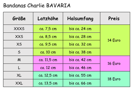 Wir haben das Halstuch in 8 Größen bzw. fertigen gerne auch nach Maß.